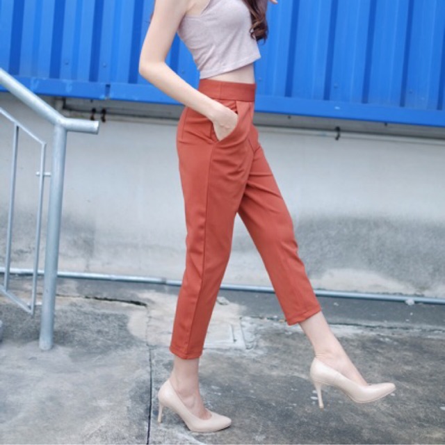 ยอดขายมากกว่า1,000ตัว CLARIS PANTS กางเกงฮานาโกะ ผ้าฮานาโกะ เนื้อหนา ทรงกระบอกเล็ก 7ส่วน กางเกงใส่ทำ