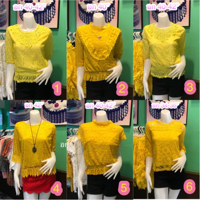 - ชื่อสินค้า ราคาปลีก 190 ฿ เสื้อลูกไม้สีเหลือง