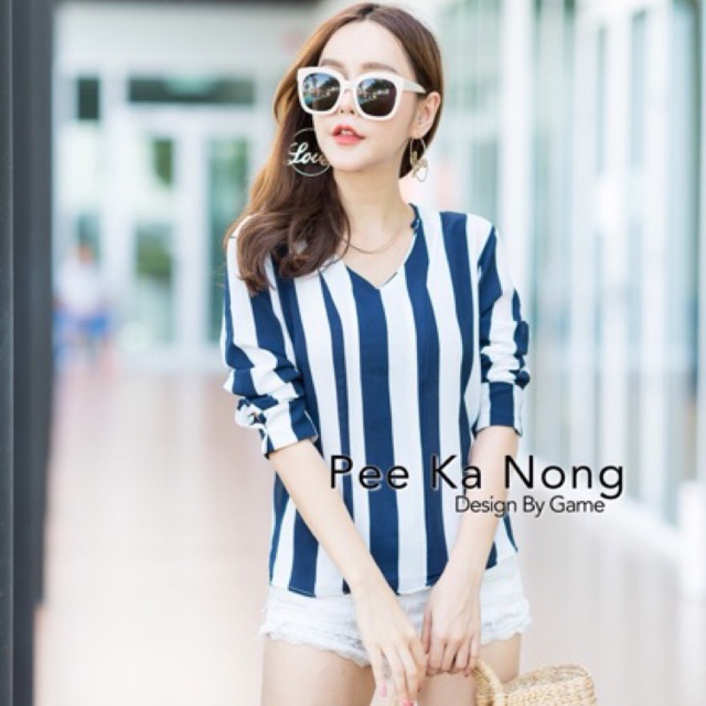>> สินค้ามีพร้อมส่งจ้า กดสั่งซื้อได้เลยจ้า > ส่งลงทะเบียน 7 วันได้รับสินค้า(รอนานนะคะ) > ส่ง ems 3 วันได้รับสินค้า (รวดเร็วมากค่ะ) > หากรีบใช้แนะนำสั่งแบบ ems นะคะ >มีบริการเก็บเงินปลายทาง โดยเลือกจัดส่ง Kerry นะคะ<< รายละเอียดสินค้า Summer Collection เสื้อคอวีลายริ้วใหญ่ แขนยาว ใส่แล้วผอมทรงสวยแขนบอลลูนนิดๆ Color : 3 สี ดำ กรม ฟ้า Size : รอบอก 36 นิ้ว ยาว 23 นิ้ว บ่า 15.5 นิ้ว วงแขน 16 นิ้ว แขนยาว 22.5 นิ้ว