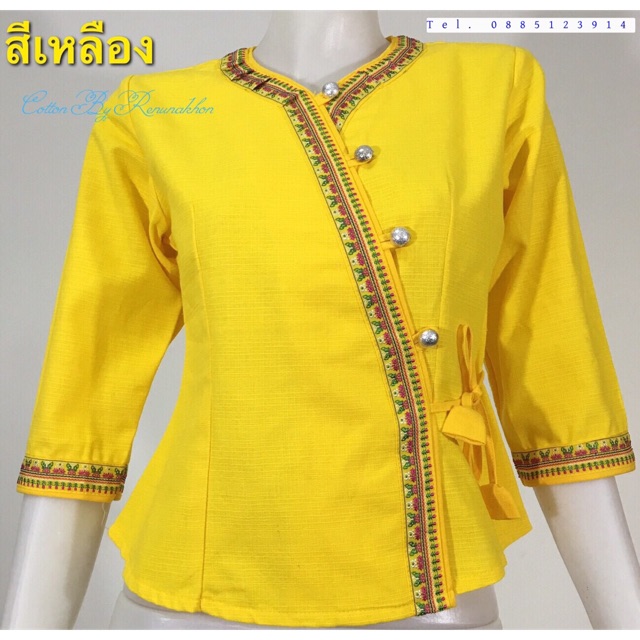 ขายลดราคา เสื้อผ้าไทยภูไทยเฉียงผ้าฝ้าย - สีเหลือง ส่งถึงบ้าน เก็บเงินปลายทาง รอรับได้เลย