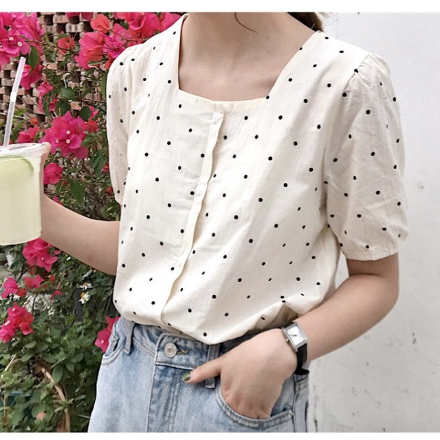Polkadot Design Oversize เสื้อเชิ้ตผ้าผ้าฝ้าย Polkadot แบบหวาน สาวๆ ไม่ควรพลาดค่ะ ไสตล์แบบเดียวกับ ZARA เชิ้ตคอกลมนะคะ ออกแนวหวานนิดๆ ชายแขนจั้มนิดๆ ใส่แล้วน่ารักนำเข้ามาขายเองค่ะ ผ้าทิ้งตัว นิ่ม ใส่เย็นสบาย เข้ากับชุดง่าย น่ารักค่ะ จะใส่ชิวๆ หรือใส่ทำงานก็เข้ากั๊นเข้ากันค่ะ คุณภาพดีค่ะ แนะนำเลย ขนาดสินค้า: (นิ้ว) อก 36 ไหล่ 14 แขนยาว 9 แขนกว้าง 12 ความยาว 23