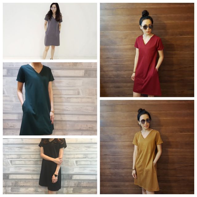 ★เช็คราคา ขายดีเดรส คอวีแขนสั้น ผ้าเรียบ อก 34/ 36