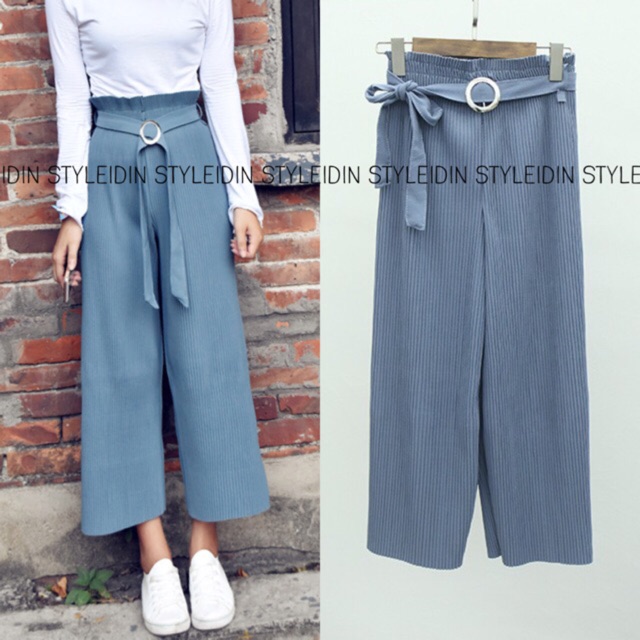 รีวิว กางเกง+เข็มขัด ขายาว ผ้าคูลอตจับจีบพลีท (ถี่เล็ก) กางเกง 9 ส่วน
