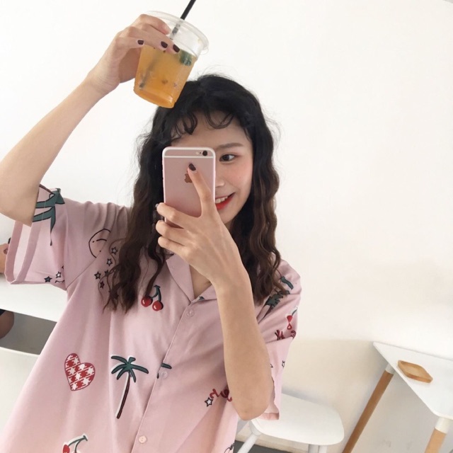1.ช่วงเวลาสินค้าที่ร้านรับประกัน เมื่อสั่งซื้อ พร้อมส่งCherry peach shirt เสื้อคอปกลายเชอรี่พีช สไตล์เกาหลีC062
