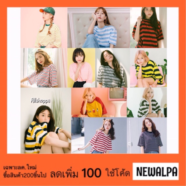- CODE : NEWALPA ลค.ใหม่ลดเพิ่ม100 พร้อมส่ง Oversize ลายทางสไตล์เกาหลี ราคาถูก