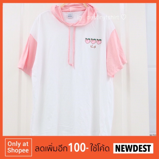 รีวิวสินค้า oversize เสื้อยืดแขนสั้นมีฮู้ด งานปักพีช กล้วย