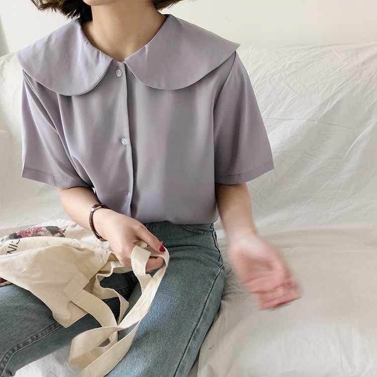 พร้อมส่งPastel free velley shirt เสื้อเชิตคอบัวสีพาสเทล มีสีม่วง ขาว สไตล์เกาหลี น่ารักมากๆ ราคาพิเศษ