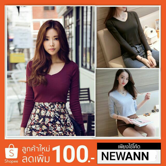 - ชื่อสินค้า T02ขายดี3ตัว280.-เสื้อแขนยาว คอวี มีเก็บเงินปลายทาง แฟชั่นเกาหลี สไตล์เกาหลี