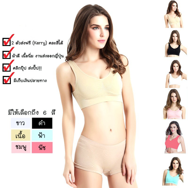 - ราคา ชุดชั้นใน ชุดชั้นในกระชับไร้รอยต่อ สปอร์ตบรา T084-BLACK