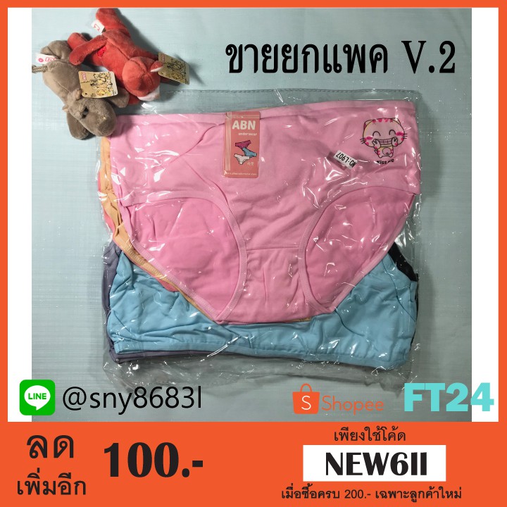 - - โปรโมชั่น V.2 แพค(10ตัว)คละสี ผ้านิ่ม ใส่สบาย ไม่เข้าวิน ราคาโรงงาน ลายใหม่