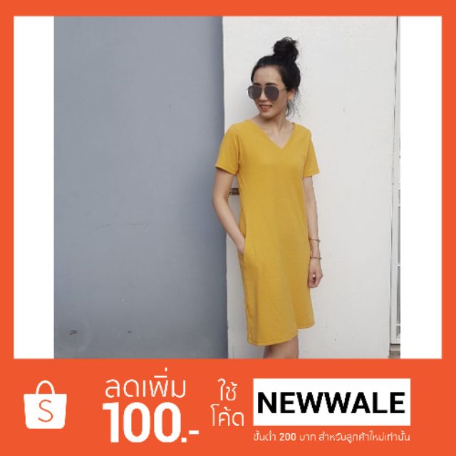 - ชื่อสินค้า คอวีแขนสั้นสีมัสตาร์ด ผ้าร่อง