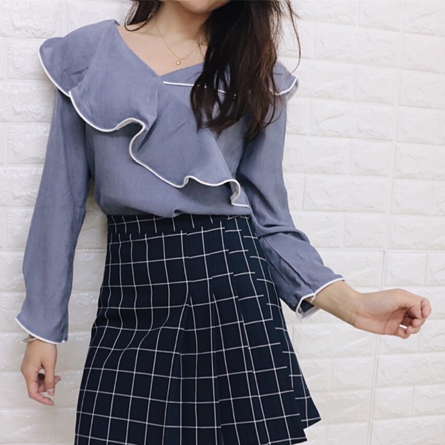 - ชื่อสินค้า เสื้อแขนยาวระบายเฉียง
