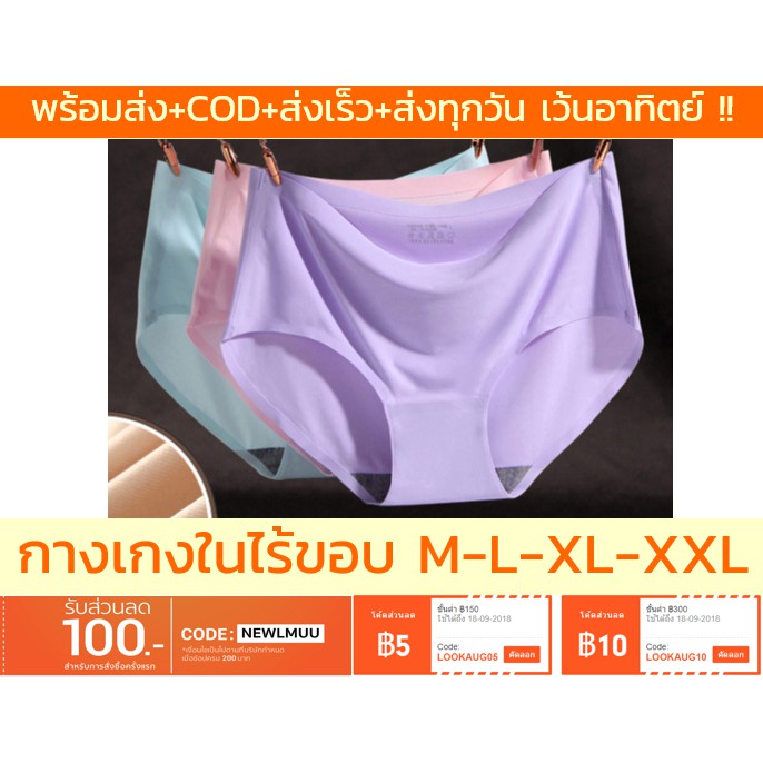 ขายถูกๆ กันเลย พร้อมส่งส่งเร็ว ส่งทุกวัน (เว้นอาทิตย์) กางเกงในไร้ขอบ M/L/XL/XXL นุ่ม ลื่น ใส่สบาย ซื้อครบ 250 ราคาถูก ส่งฟรี เก็บเงินปลายทาง รับของที่หน้าบ้านได้เลย อย่ารอช้าคลิกเลย >>สั่งซื้อออนไลน์