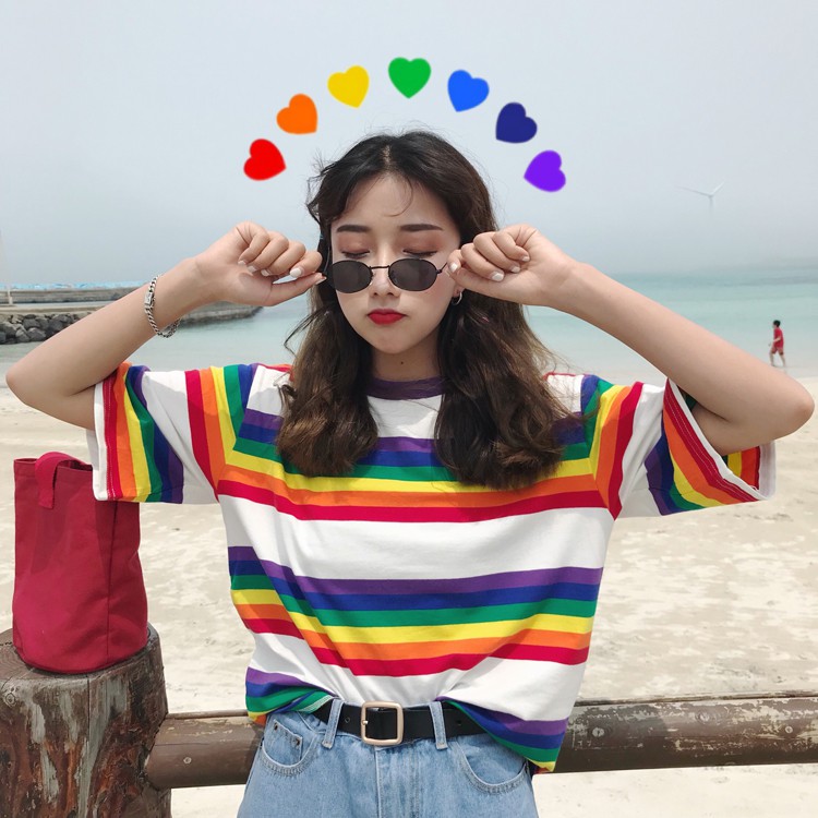 จำหน่าย Sale+พร้อมส่ง Oversize Rainbow tee เสื้อยืดลายทาง สีรุ้ง สไตล์เกาหลี ราคาพิเศษ ส่งฟรีถึงมือท่านแน่นอน ไม่ต้องโอนเงินก่อน รอรับของที่บ้าน แล้วค่อยจ่ายเงิน เพราะเรามีบริการเก็บเงินปลายทาง