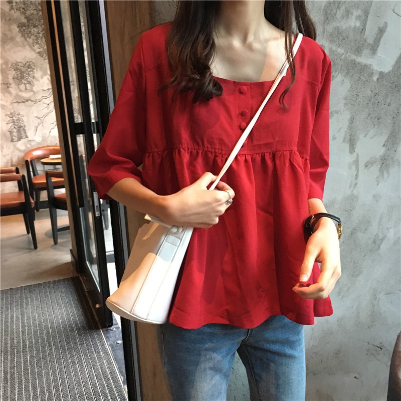 - ชื่อสินค้า พร้อมส่งSquare Red korean shirt เสื้อคอเหลี่ยมสีแดง ทรงสวย สไตล์เกาหลี